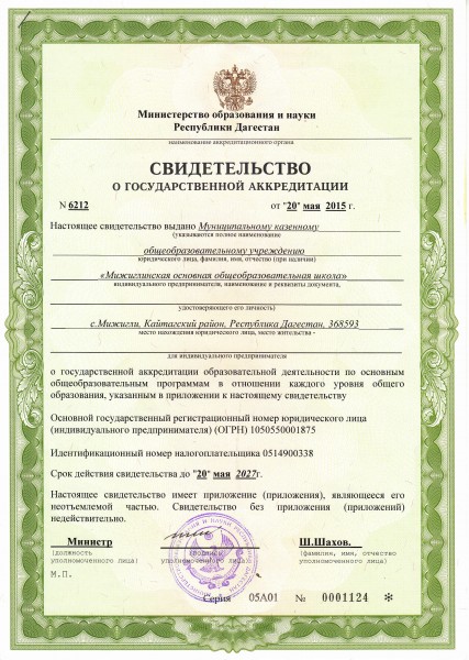 | Адрес местонахождения образовательной организации* | 368593, республика Дагестан, Кайтагский район, с. Мижигли, ул. Школьная, 7 |